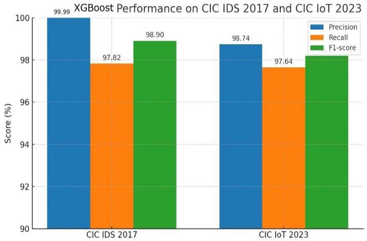 Fig. (4). XGBoost performance on CIC IDS 2017 and CIC IoT 2023 datasets.