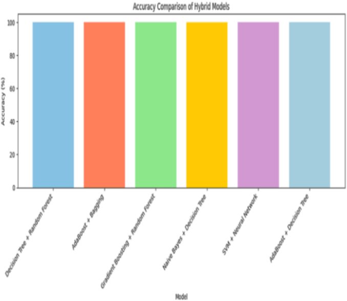 Accuracy Comparison Bar Plot: The bar plot, presented in Fig. (5), showed that all hybrid models reached 100% detection accuracy for DDoS attacks as presented in Fig. (5).