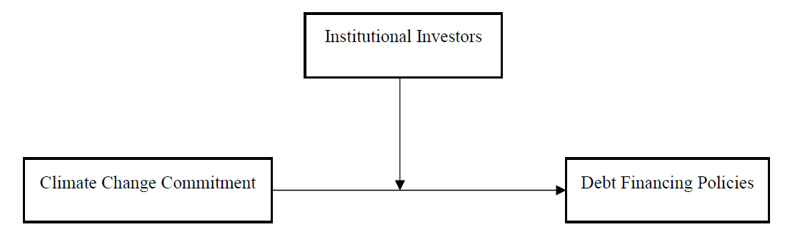 Fig. (1) represents the conceptual framework of the study. The conceptual model examines the interaction between CCC as the independent variable and debt financing policies as the dependent variable, with institutional investor influence as a moderating variable. The model argues that companies with high CCC would realign their debt policies in response to perceived ecological risk or rising sustainability investment requirements (Lemma et al., 2021). Institutional investors can reinforce or weaken this link by affecting managerial choices, improving transparency, and boosting lender confidence (Zhao et al., 2021). Institutional investors function as active monitors and ensure that CCC efforts are credible and strategically aligned, potentially improving firms’ access to and terms of debt financing.